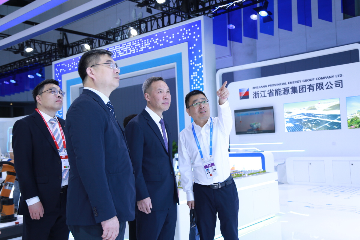 浙江省副省長李巖益出席開幕式,并在巡館期間參觀了浙能集團展位,重點聽取了集團在綠色低碳發展、低碳數字經濟等方面的發展情況介紹,對浙能集團爭做能源科技高質量發展排頭兵、推動浙江省能源體系綠色低碳轉型所展現的浙能擔當表示充分肯定。浙能集團黨委委員、副總經理王穆君陪同參觀。