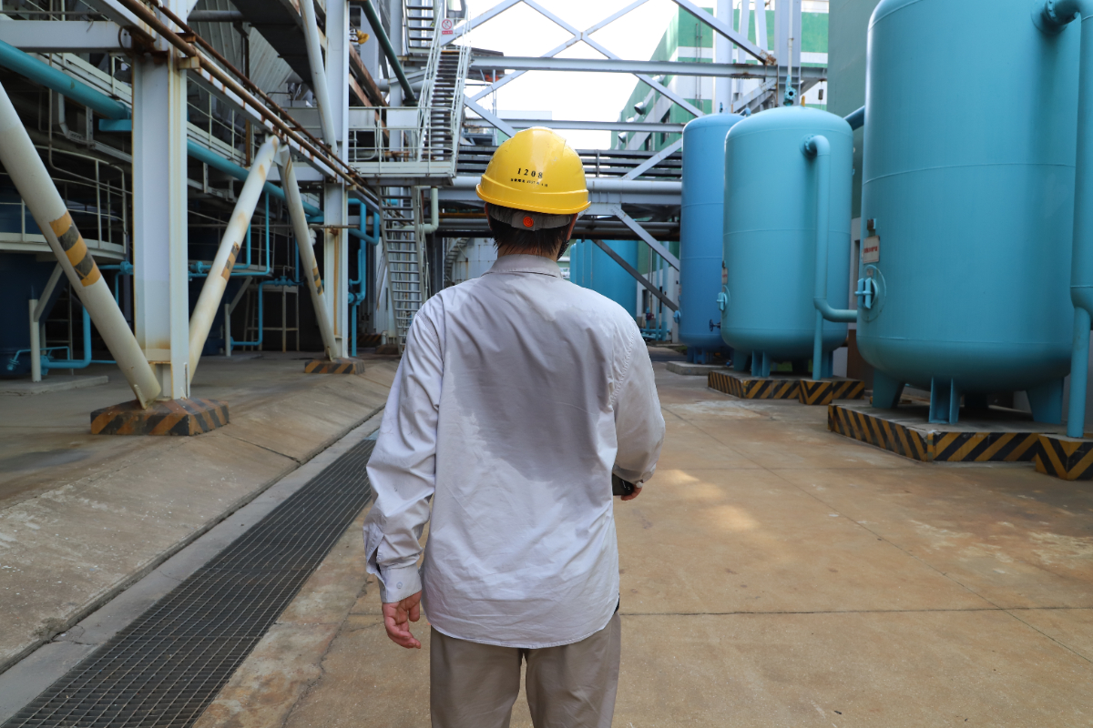 在風機處,他熟練地將測振儀輕輕抵住振動監(jiān)測點,感受著設備內(nèi)部傳遞出的每一下搏動。汗水順著他的額角、鬢角不斷滾落。“振動值尚在允許范圍。”明子堯在隨身攜帶的巡檢記錄本上快速寫下判斷,字跡因汗水滴落而微微暈開。每一次這樣的凝神諦聽與精準判斷,都是對潛在隱患的提前預警,是對龐大機組安全運行的無聲守護。當他轉身走向下一個巡檢點時,淺灰色工裝的背后,已被汗水洇濕出大片不規(guī)則的深色印記。