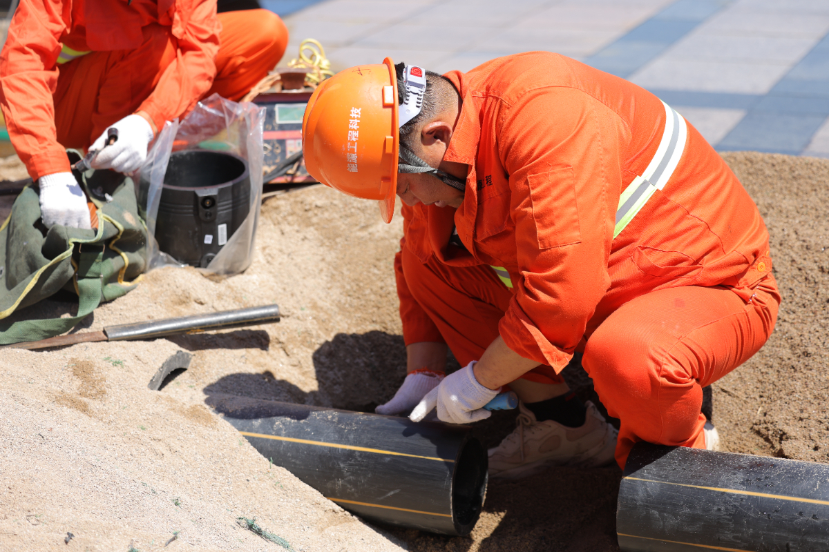 演練人員開展管網(wǎng)搶修。 朱巧奕 攝