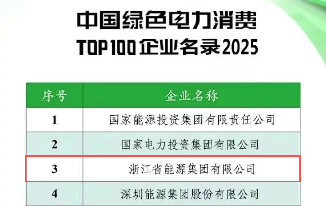 浙能集團入選中國綠色電力(綠證)消費TOP100企業名錄